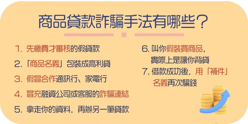 商品貸款本來是合法的分期或小額貸款工具,但因為「名義好包裝、流程看起來簡單」,也成了詐騙最常利用的漏洞。以下這些是市面上最常見、也是最多人踩雷的手法。