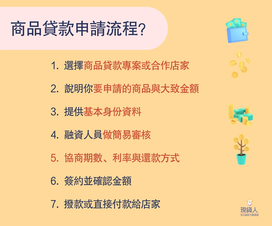 商品貸款雖然掛著「買商品」的名義,但流程其實比一般信貸來得輕鬆、快上許多。大部分融資公司或專案的操作方式都差不多,你可以照下面這幾步理解。