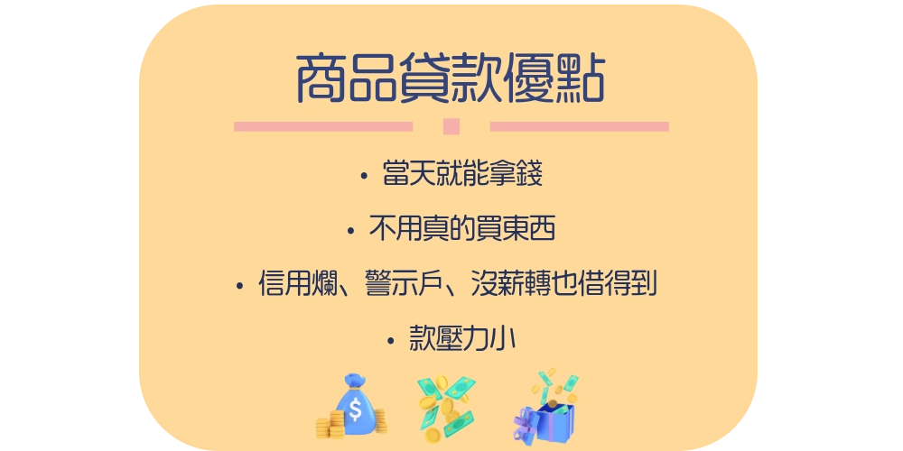 說是商品貸款,實際上什麼商品都沒有。常見話術像是: