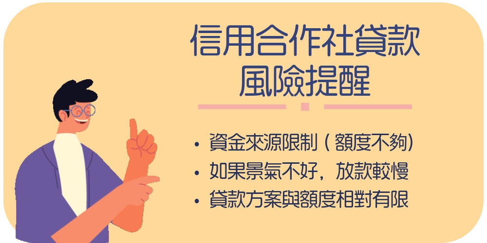 跟銀行的穩定金流來說,信用合作社貸款的 風險還是存在的,例如: