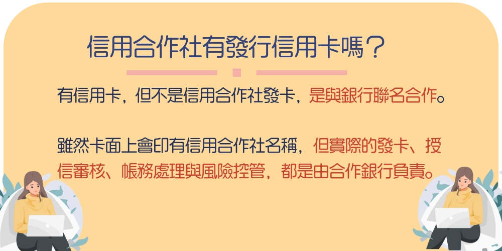 雖然卡面上會印有信用合作社名稱,但實際的發卡、授信審核、帳務處理與風險控管,都是由合作銀行負責。