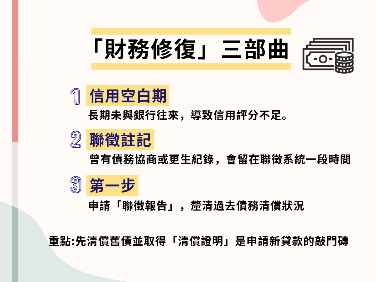 信用紀錄看的不只是「有沒有問題」,而是目前的信用狀態是否已經回到相對正常、可控的範圍。對更生人而言,想提高申請成功率,先把信用狀況整理好,往往比急著送件更重要。