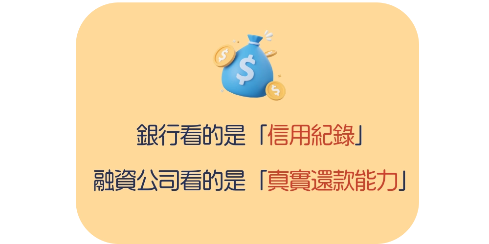 這也是民間融資和銀行最大的不同——銀行看的是「信用紀錄」,融資公司看的是「真實還款能力」。
