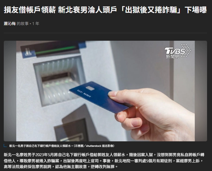 以下報導中,就連借朋友「提款卡」都可能變成人頭帳戶,更不用說交給不認識的業主申辦貸款。