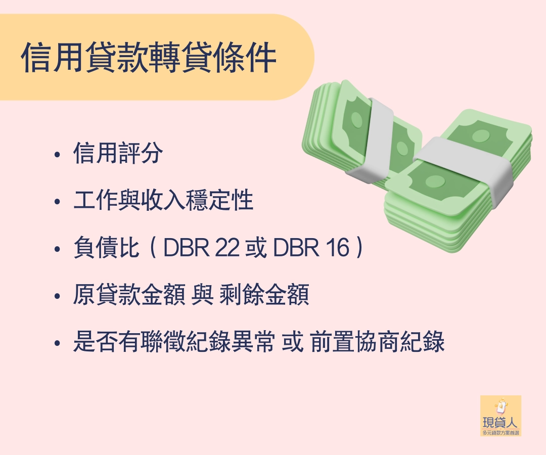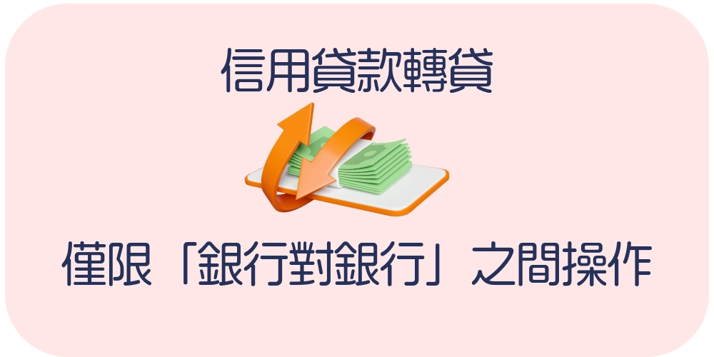 - 信用貸款轉貸,限「銀行對銀行」之間操作