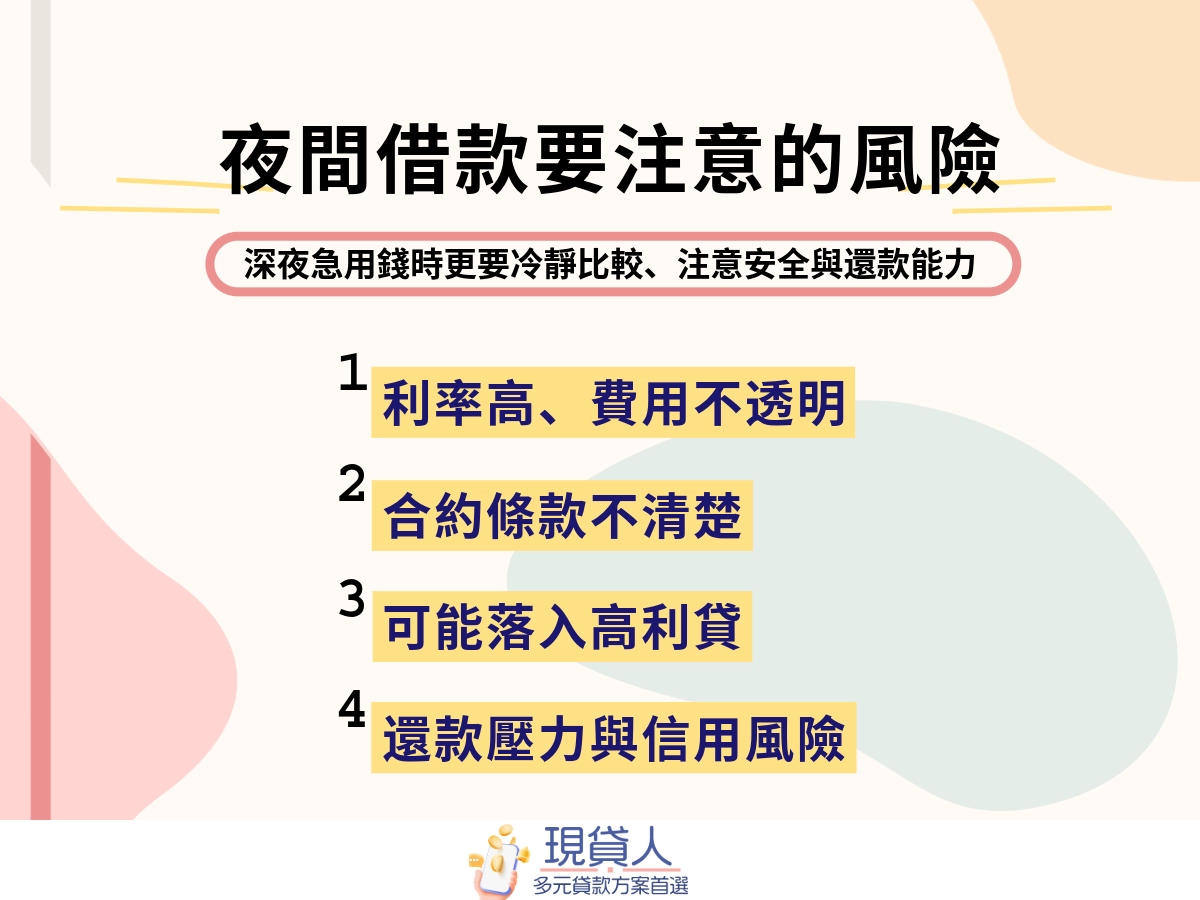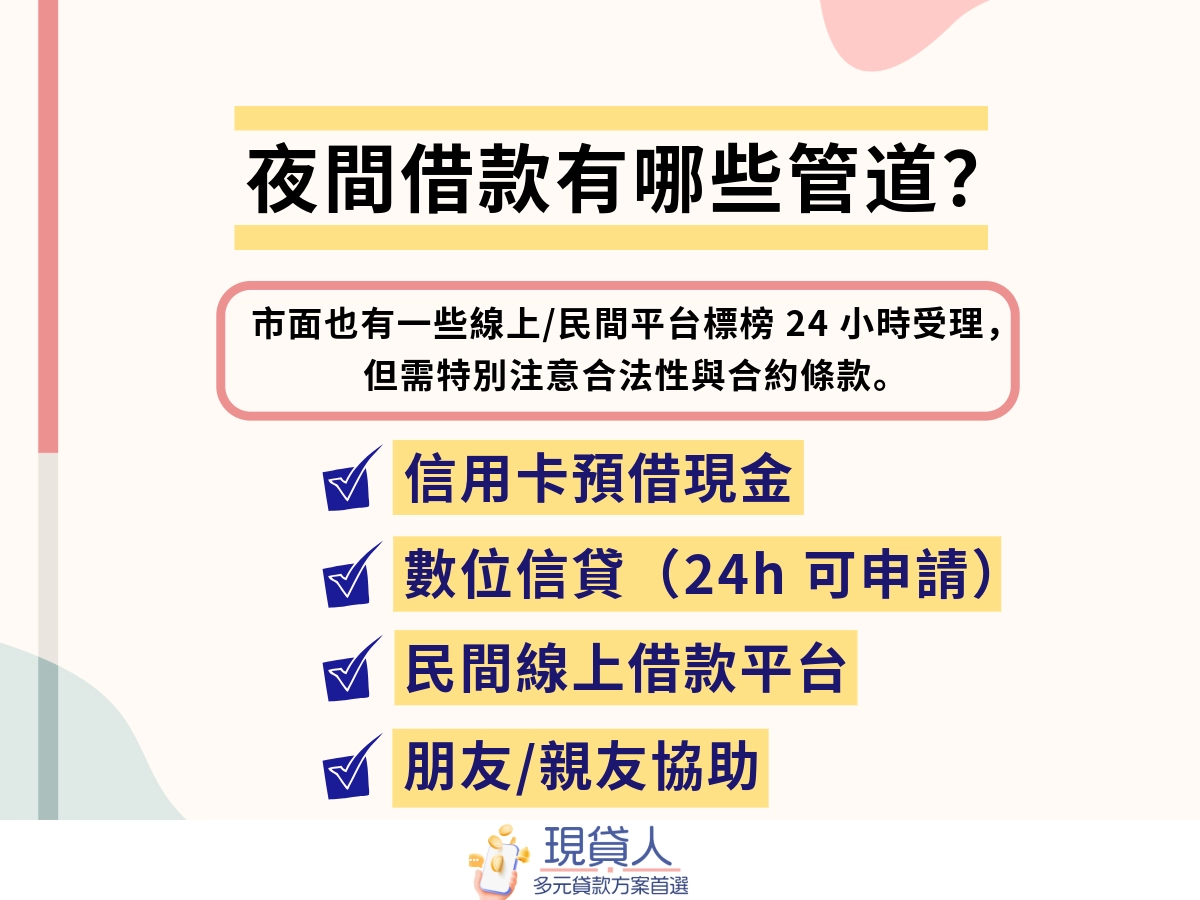 在夜間急需資金時,了解哪些選項相對安全、哪些需要特別留意,反而比「能不能馬上借到」更重要。