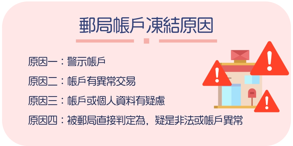 是因為長時間未使用帳戶、還是變為警示戶了,導致所有帳戶被凍結了,也包含郵局帳戶。