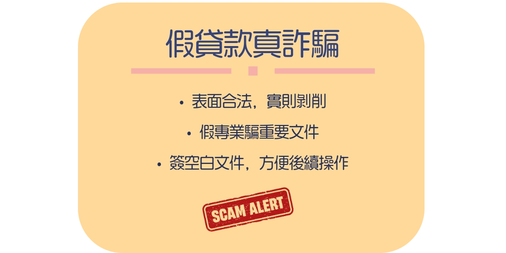 詐騙集團會和不法貸款業者、仲介或代書合作,假借好心說可以幫你貸到高額貸款或快速核貸,但收的手續費、服務費可能比市場高上好幾倍,錢還可能被他們私下分潤。