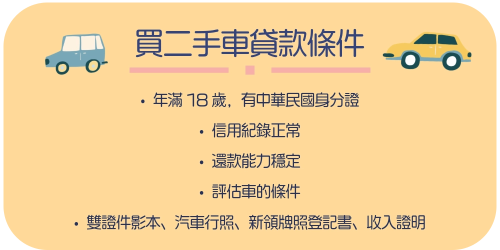 買二手車貸款條件有: